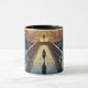 A breathtaking sci-fi fantasy artwork portraying a majestic celestial being with radiant wings descending from a divine portal of light. The scene is filled with intricate architecture, floating symbols, and flying doves, merging futuristic and angelic elements in a surreal dreamscape. A perfect design for a mug that inspires imagination and wonder with every sip!