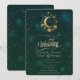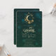 Celestial Gold Floral Moon Stars Wedding Green Invitation