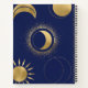 Celestial gold sun moon phases eclipse on a purple blue background. Choose from sketchbook, bullet journal, checklist, graph paper, recipe book, or lines in various widths and colours. Also choose a spine colour to further customise your notebook look.