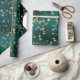 Celestial Golden Stars on Teal Galaxy Background Wrapping Paper