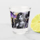 Raise a toast to the mystical with this captivating shot glass from the Celestial Gothic Witch and Black Cat Suite. The design wraps around in a swirl of celestial beauty, showcasing a sky bathed in purple, pink, yellow, and white—a dreamy twilight scene straight out of a magical realm. A deep black crescent moon and scattered stars float above, setting a cosmic mood that’s perfect for any gathering, altar, or personal collection.