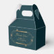 Celestial Green Gold Sun Moon Astronomy 30th Birthday Favour Boxes features an elegant gold sun, moon and stars with a golden frame on a green background. Inside is your custom thirtieth birthday favour box information. Personalise by editing the text in the text boxes. Designed for you by Evco Studio www.zazzle.com/store/evcostudio