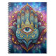 An artistic and detailed representation of the hand of Fatima, a powerful symbol of protection and good fortune, adorned with intricate designs and an all-seeing celestial eye.