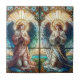 While it may not be authentic stained glass, the tile’s intricate craftsmanship and careful use of colour create a stunning illusion. The detailed glazing and textured finish evoke the luminous effect of light passing through glass, allowing this ceramic artwork to hold the same spiritual and artistic appeal.