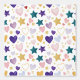 This whimsical seamless pattern expands the collection's horizon by introducing watercolor stars alongside the classic hand-painted hearts. The palette is a vibrant mix of deep plum, teal, and amber, softened by delicate blush and lilac tones. The design retains the signature gold botanical leaf sprigs and hollow gold-outlined hearts while adding bold gold glitter stars and dots. Set against a clean white background, this pattern is perfect for magical nursery themes, playful kids' apparel, or creative scrapbooking projects.