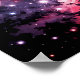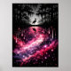 The mirrored composition creates a powerful visual contrast between earth and cosmos, reality and imagination. The upper half is calm, minimal, and monochromatic, while the lower half explodes with vibrant magenta, violet, and starlit detail. This balance makes the piece both dramatic and meditative.