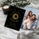 Celestial mystical personalised photo save the date featuring galaxy milky way midnight sky with star dust, crescent moon and other astrological symbols in black and golden colours and written quote "CAUSE IN THE SKY FULL OF STARS I SAW YOU". This card is easily editable. If you need help with the customisation of this card or you need more matching products for this collection kindly message me via Zazzle.