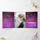 3 in 1 wedding invitation. Bright pink and black Celestial Galaxy Night Sky Stars Wedding Tri-Fold Invitation with photo, rsvp, and details all in one wedding card.