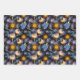 Celestial Magical Pattern Moon Stars Sun Black Sky Wrapping Paper Sheet