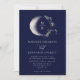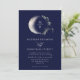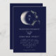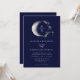 This elegant wedding invitation features a watercolor moon with botanical accents showcasing the couples monogram initials and set against a midnight blue card. Personalise all the important details including bride and groom name, wedding date and location.