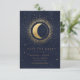 Our "Celestial Gold Wedding" collection features a beautiful crescent moon with gold stars in various designs on a velvet midnight blue background paired with elegant fonts. Easy to customise and you can choose among many more matching items from this collection in our store.