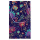 Embark on a mystical journey with this enchanting midnight-blue gift bag. Featuring intricate, vibrant flowers in jewel tones of teal, magenta, and amber, this design is woven together with celestial elements like golden crescent moons and twinkling stars. This magical, boho-inspired pattern is a perfect choice for birthdays, spiritual celebrations, or anyone who loves a touch of cosmic whimsy.