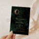 Celestial Midnight Green Gold Stars Quinceanera Invitation