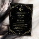 Step into a world of enchantment with our Celestial Midnight Sky Black Gold Wedding Invitation. This luxurious invitation showcases a stunning golden design against a deep black backdrop, evoking the magic of a starlit midnight sky. Adorned with a crescent moon and shimmering stars, it promises an evening of elegance and celestial wonder, perfect for your unforgettable mystical wedding.