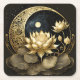 Celestial moon and lotus flower square paper coaster