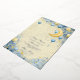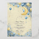 A dreamy watercolor design featuring a glowing crescent moon surrounded by hanging stars, fluffy clouds, and festive balloons in soft shades of blue and gold. Perfect for creating a magical and celestial-inspired baby shower atmosphere.
