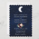 Celestial Wedding invitation. Watercolor blue night sky with stars and the moon. Watercolor Burgundy Marsala Blue Pink Floral. Greenery Eucalyptus Leaves. Scalloped edges.