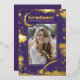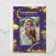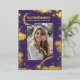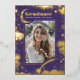 This unique graduation party photo invitation captures the celestial starry night beauty, with shimmering foil stars scattered across the purple backdrop. The moon rests in one corner, while a shooting star streaks through another, adding a dash of magic to the scene. The design is rich and enchanting, yet thoughtfully arranged to ensure the graduate’s photo takes centre stage, standing out as the true highlight. The reverse side of the invitation is sleek and minimalist, focusing on the essential details of the graduation celebration. It's more than just an invite; it’s a reflection of the graduate’s journey and the dreams they’ve worked hard to achieve. Perfect for those who feel like they're reaching for the stars, this design speaks to dreamers, astronomy lovers, aspiring space explorers, and anyone with a spiritual connection to the mystical and cosmic realms.