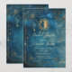 Celestial gold moon, stars, and frame on a blue background. Magical design perfect for a starry occasion. A fun astrology, horoscope, zodiac, celestial themed bachelorette trip invitation.