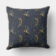 An elegant celestial pattern throw pillow featuring golden crescent moons, and scattered stars set against a deep blue background. Inspired by vintage astrology and mystical night skies, this seamless design blends luxury gold textures with cosmic symbolism.