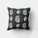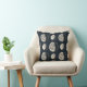 Elegant moon phase and celestial pattern throw pillow featuring crescent moons, stars, and radiant lunar details on a dark background. Ideal for astrology lovers, moon enthusiasts, spiritual seekers, stargazers, and fans of mystical celestial style.