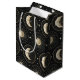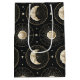 Elegant moon phase and celestial pattern gift bag featuring crescent moons, stars, and radiant lunar details on a dark background. Ideal for astrology lovers, moon enthusiasts, spiritual seekers, stargazers, and fans of mystical celestial style.