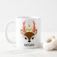 Capture the magic of the holiday season with this adorable Personalized Girl Reindeer Mug. The design features a sweet reindeer face with festive antlers that incorporate unique moon, star, and crescent celestial elements. Customize it with any name (e.g., 'Megan') to create a charming, unique Secret Santa gift, a perfect stocking stuffer, or a lovely personalized gift for friends and family who love a touch of fantasy or celestial style