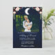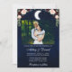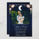 Celestial wedding invitation. Watercolor blue night sky with stars and the moon. Couple Photo.