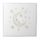 Celestial Moon with Face & Stars Gold Silver White Tile