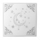 "grey silver white delft", "celestial moon ceramic tile", "historic antique vintage stars", "astrology folk mythological art", "mediaeval lunar astrological mythology", "mystical mystic corner flourish", "occult masculine feminine decorative", "monochromatic grey la luna evening", "traditional cosmic star duality", "classic space night sky stars"