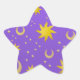This fun bright star sticker design features large Golden Sun and Moons with smaller clusters of Stars against a soft purple background.