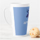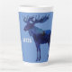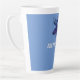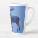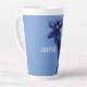 Latte mug features watercolor moose silhouette with celestial sky fill and customisable text on light blue background