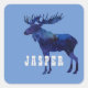 Square sticker has moose silhouette with celestial sky fill and customisable text on light blue background