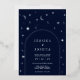 This design features vintage elegant personalised celestial wedding invitation with classic star and moon silver symbols arch frame in navy blue night sky colour. This card is easily editable. If you need help with the customisation of this card or you need more matching products for this collection kindly message me via Zazzle.