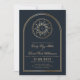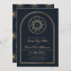 This design features navy blue and golden celestial art including bohemian linear wavy sun logo and arch golden frame personalised wedding invitation. This product can be easily personalised. If you need help with the customisation of the product or need matching products kindly please contact me via Zazzle.