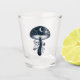Pretty Magical mushroom with a crescent moon, planet and stars within the mushroom design. Dark navy blue contrast with a white glow emanating from the underside of the mushroom.