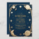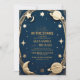 Celestial Navy Gold Crescent Moon Wedding Invitation