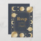 Celestial Navy Gold Crescent Moon Wedding RSVP Card
