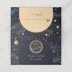 Elegant navy blue background with gold celestial accents