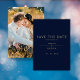 This design features minimal elegant personalised navy blue celestial photo save the date with classic star and moon golden mystical symbols. This card is easily editable. If you need help with the customisation of this card or you need more matching products for this collection kindly message me via Zazzle.