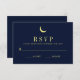 This design features minimal elegant personalised navy blue celestial wedding response card with classic star dust and crescent moon golden mystical symbols. This card is easily editable. If you need help with the customisation of this card or you need more matching products for this collection kindly message me via Zazzle.