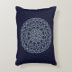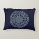 A lace-like concentric circle mandala in light blue with bright blue and gold star-like dots spangled among the layers makes for a fun, design that brings to mind a starry night sky.