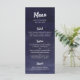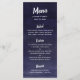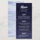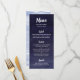 This night sky wedding menu is perfect for an evening under the stars. The navy blue menu can be personalised to include the couple's names and wedding date, along with three dining courses. The back of the menu includes a light blue watercolor wash.