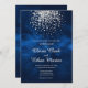 This celestial themed wedding invitation features a splash of silver confetti on a blue universe background with stars. You can customise this card in the edit design menu. this is part of a matching wedding suite.