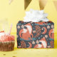 This pretty all occasion gift wrapping paper features a red fox image surrounded by boho style flowers, leaves, symbols, and crescent moons. Predominant colours include cinnamon brown, slate blue, tan, and navy blue. Appropriate for birthdays or any special occasion.