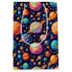 A unique outer space celestial pattern featuring bright colour planets and stars. A perfect gift bag for any science and space fan.