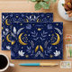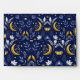 Celestial Romance's enchanting design blends celestial wonder with romantic florals. Against a rich midnight blue, silver, and gold stars form constellations and celestial patterns. Crescent moons and stylised flowers in metallic hues add a touch of whimsy and elegance. Perfect for evening weddings, this design creates a magical atmosphere on invitations, table settings, or as a backdrop.