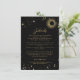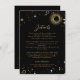 Celestial mystical personalised wedding enclosure card featuring galaxy milky way midnight sky with star dust, crescent moon and other astrological symbols in black and golden colours. This card is easily editable. If you need help with the customisation of this card or you need more matching products for this collection kindly message me via Zazzle.
