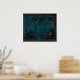 A vintage look celestial star map, constellation, galaxy in gold on a blue green background.