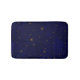 Rich and sparkly starry night in a brass bas relief graphic over a textured dark blue sky. This design and similar is found on a variety of home decor items.